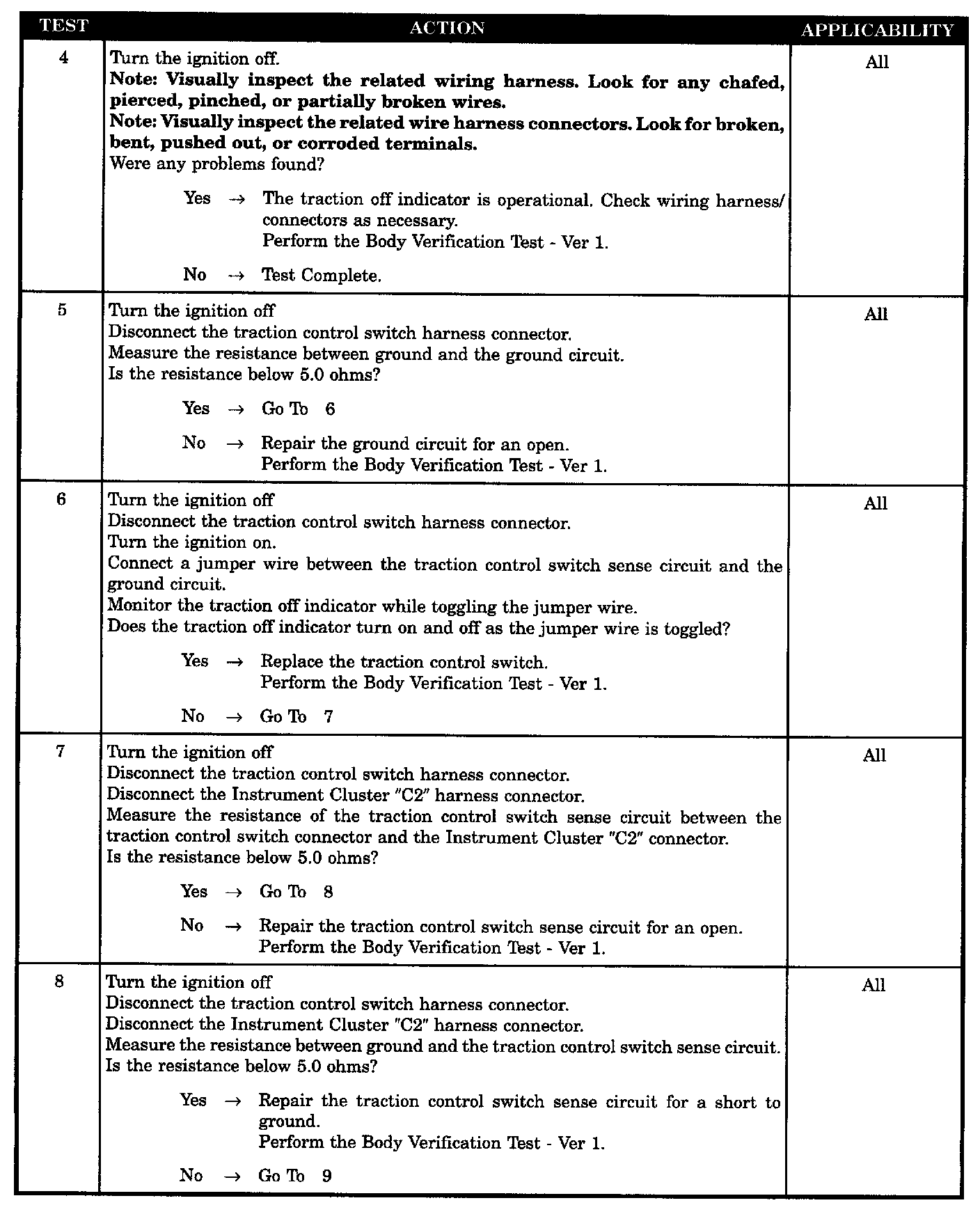 TRACTION CONTROL SWITCH SENSE CIRCUIT SHORTED TO GROUND