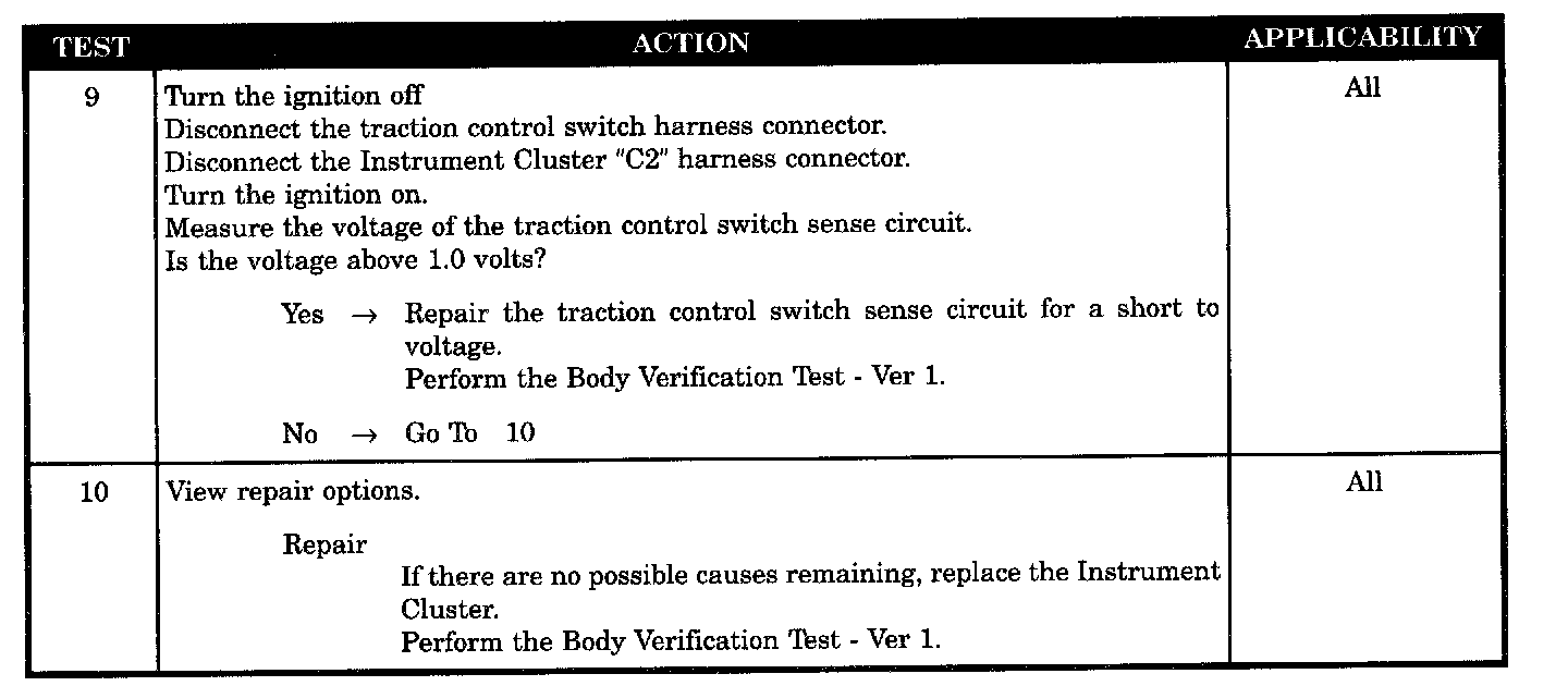 TRACTION CONTROL SWITCH SENSE CIRCUIT SHORTED TO VOLTAGE