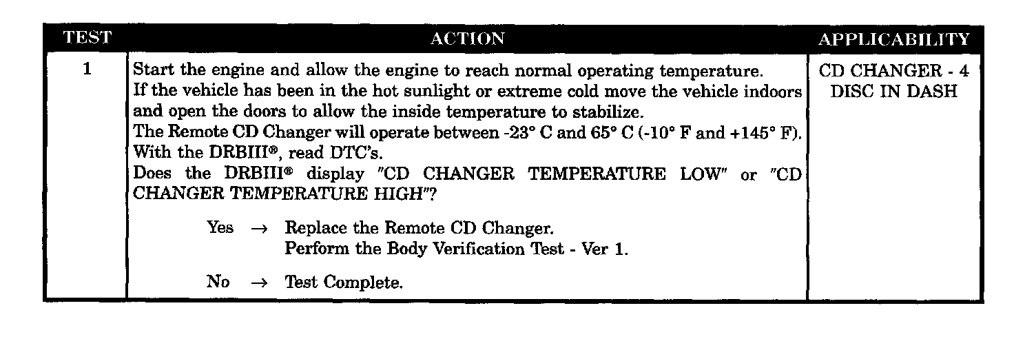 This symptom is diagnosed using the test CD CHANGER TEMPERATURE HIGH.