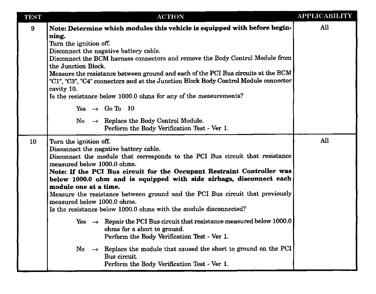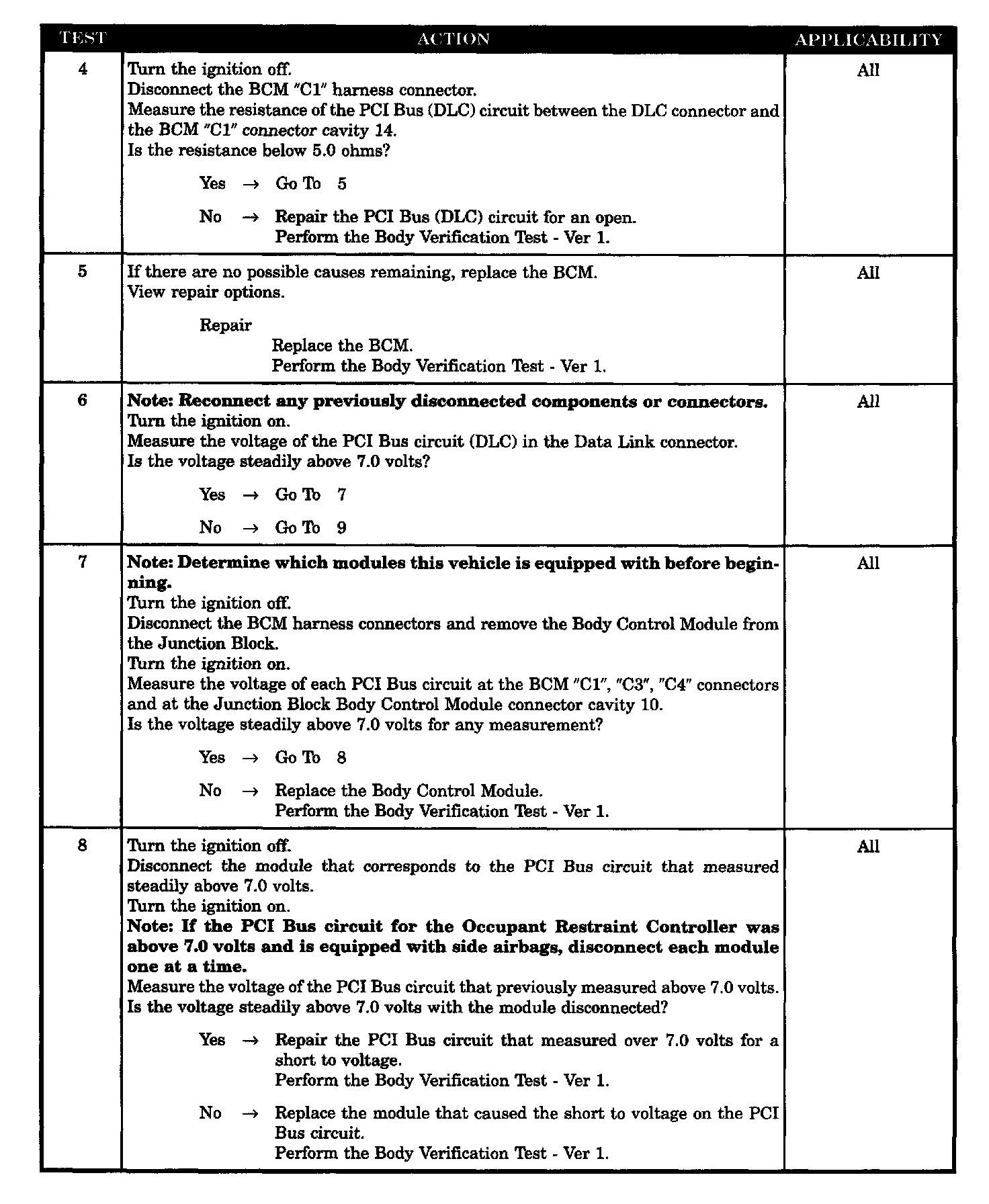 - Low resistance to ground on the PCI bus circuits at the BCM connectors