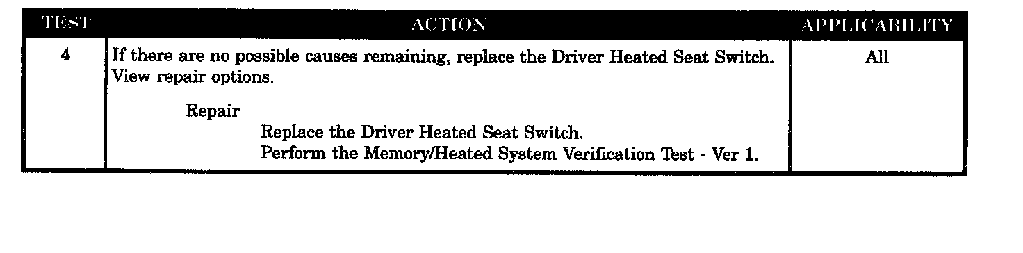 DRIVER HEATED SEAT SWITCH OPEN/SHORTED TO GROUND