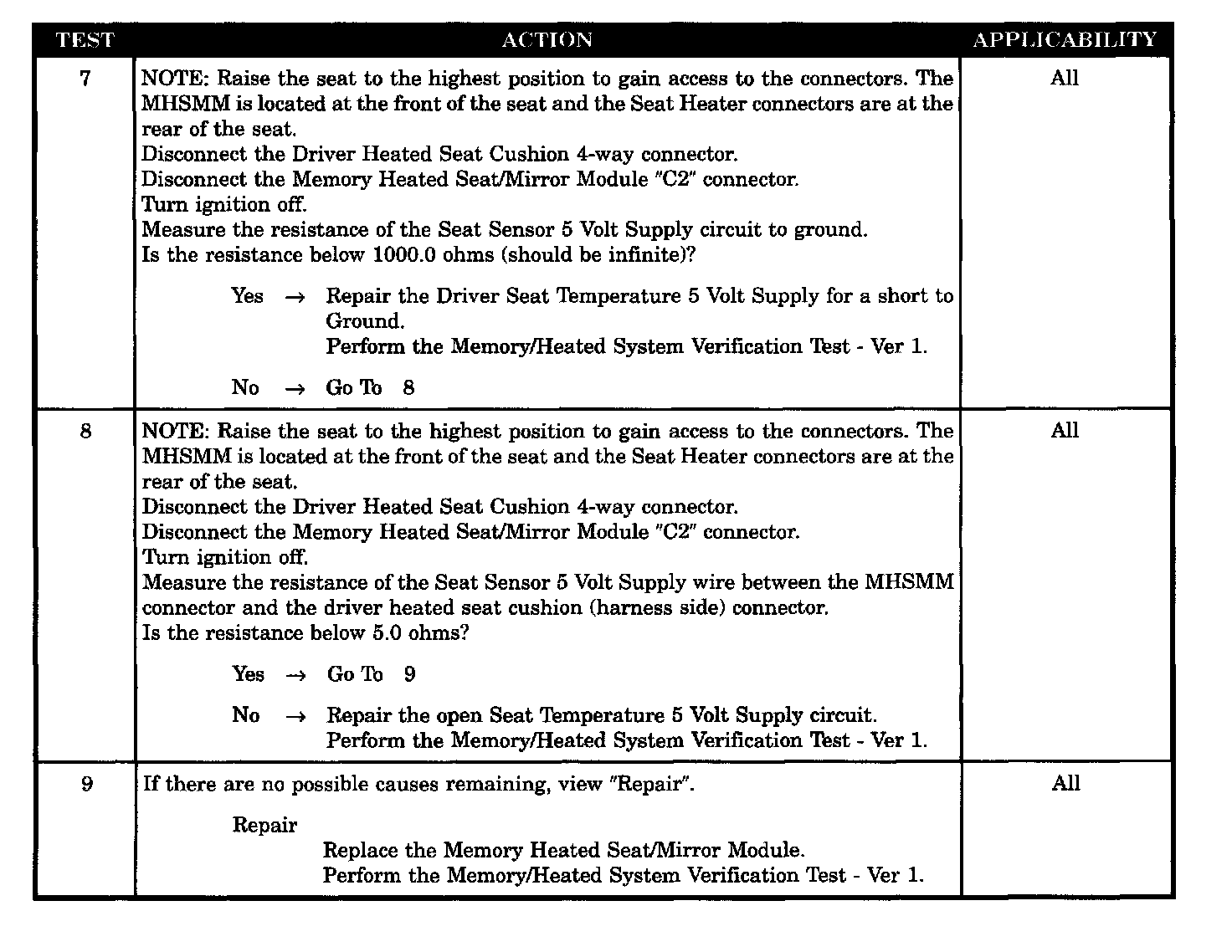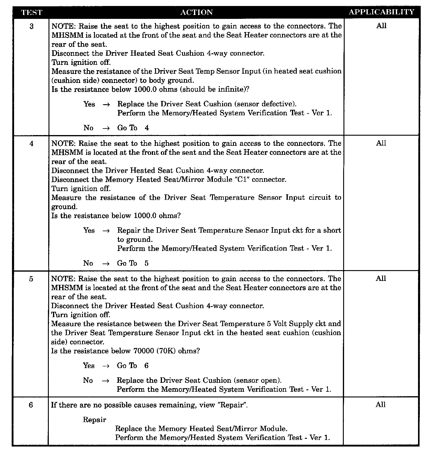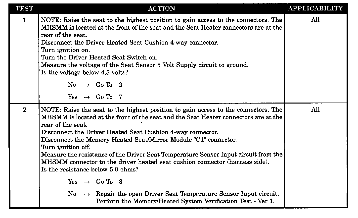 - Driver seat temperature 5 volt supply short to ground
