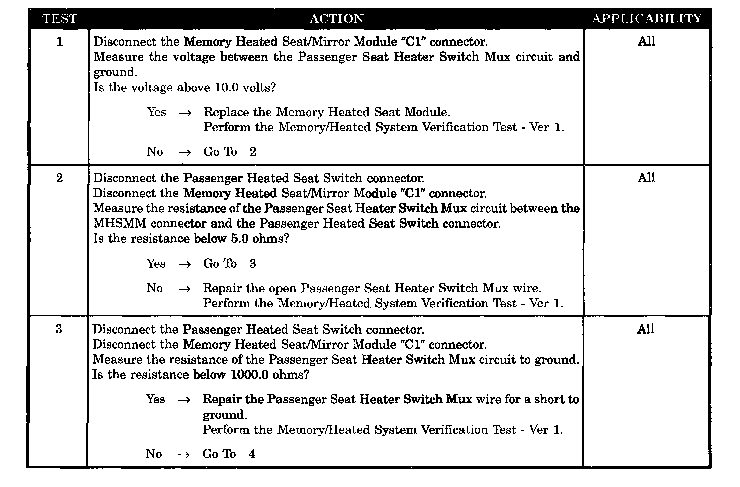 - Passenger seat heater switch MUX circuit short to ground