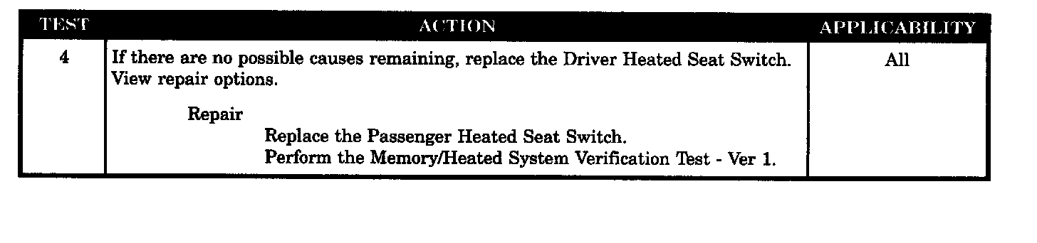 Passenger Heated Seat Switch Open/Shorted to Ground