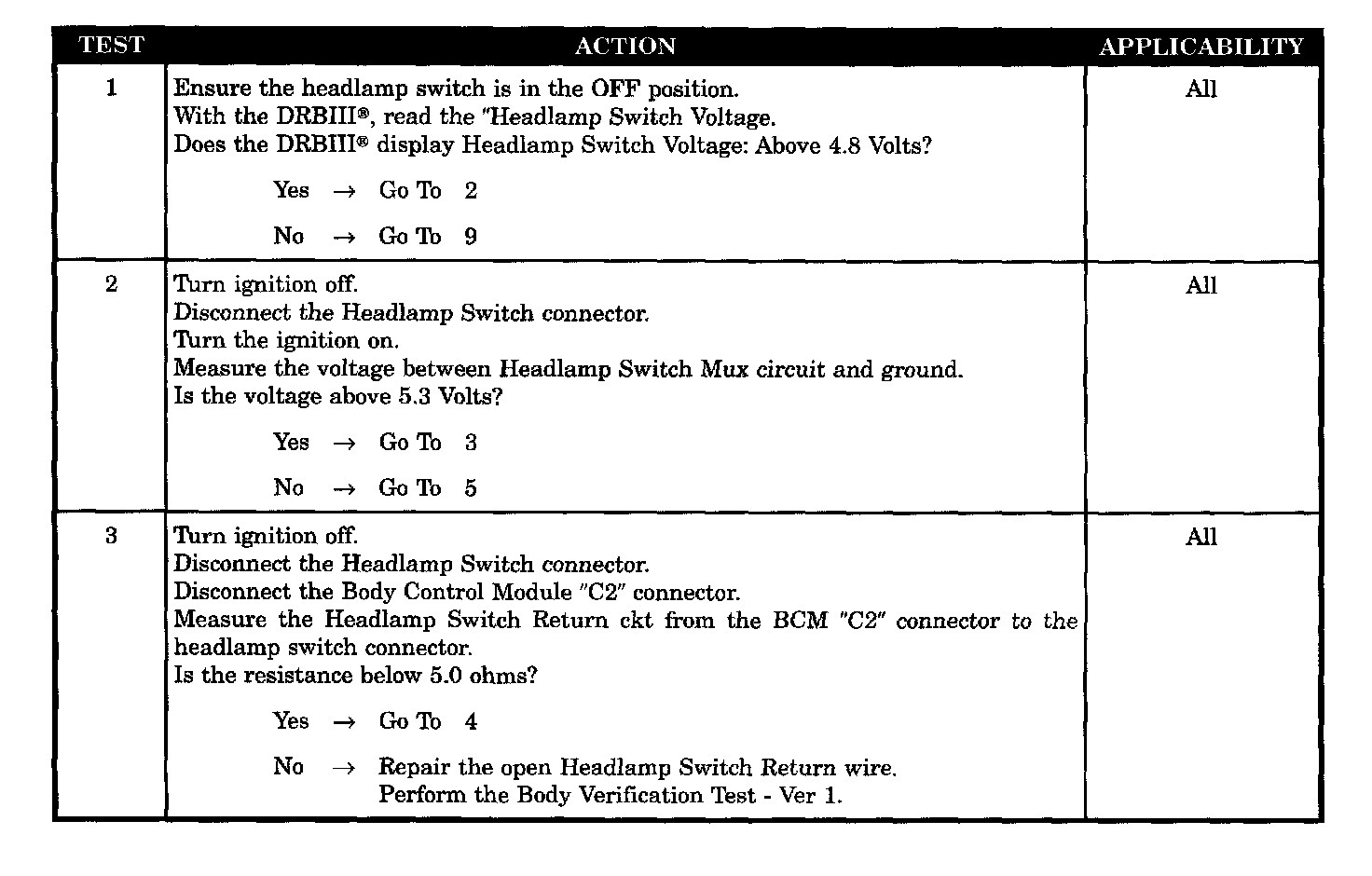 - Headlamp switch return wire open