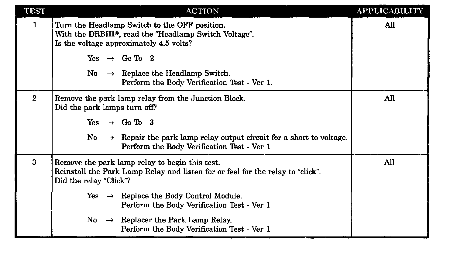 PARK LAMPS WILL NOT TURN OFF