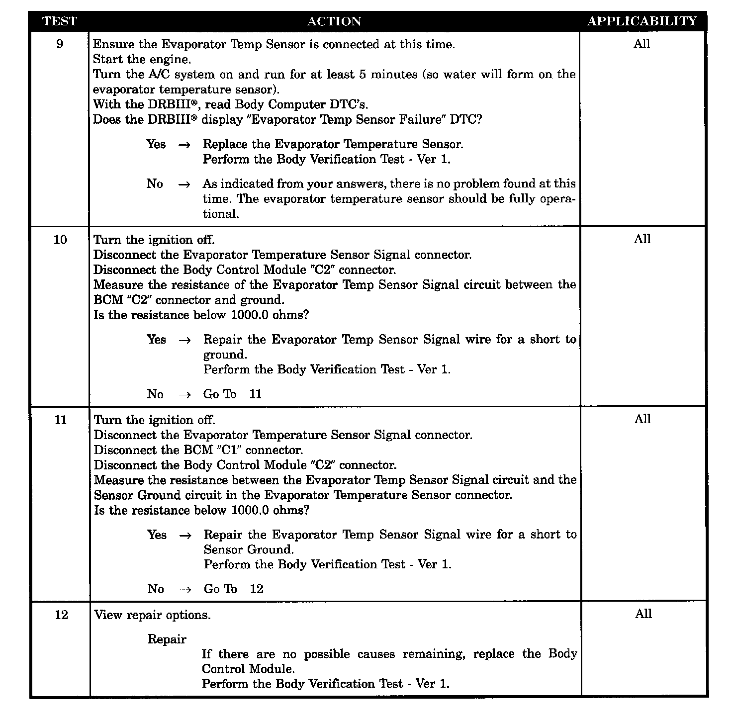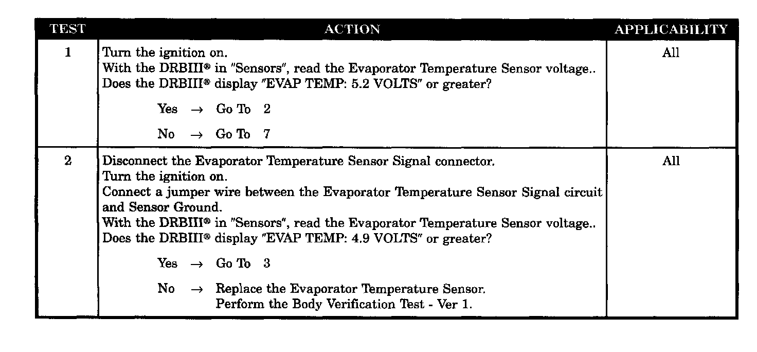 - Evaporator TEMP sensor signal CKT short to sensor ground