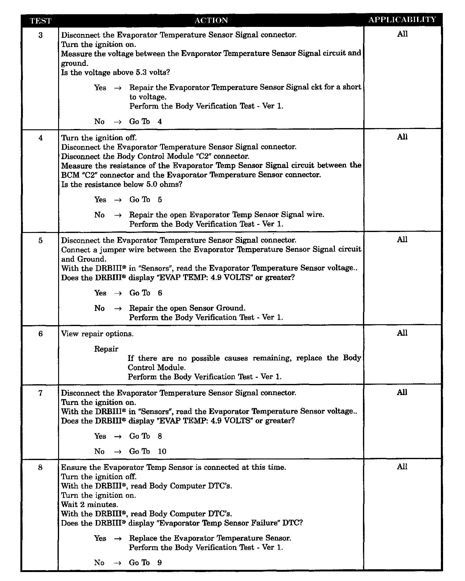 When the BCM detects an abnormally high or low voltage on the evaporator temperature sensor.