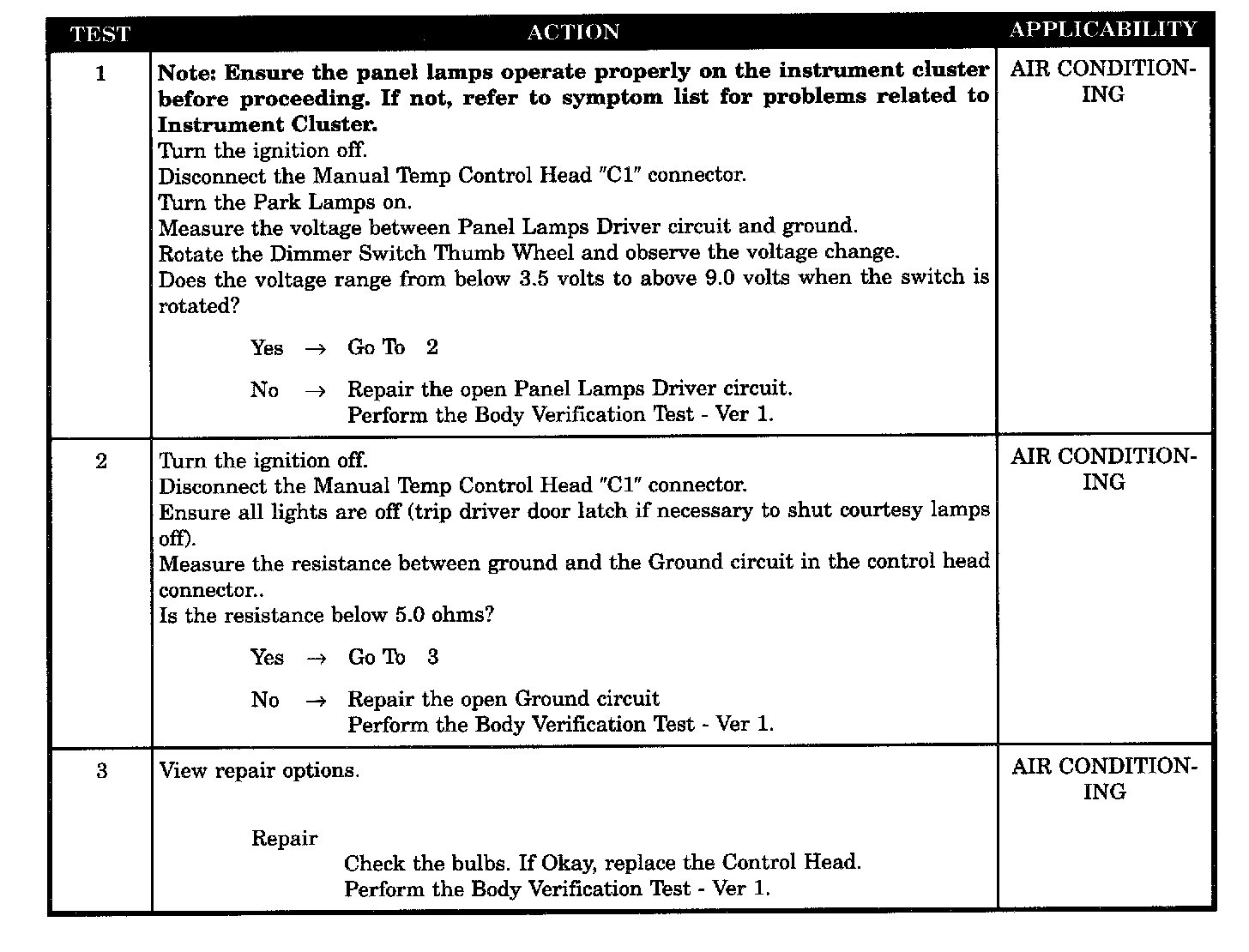 MANUAL A/C CONTROL HEAD ILLUMINATION