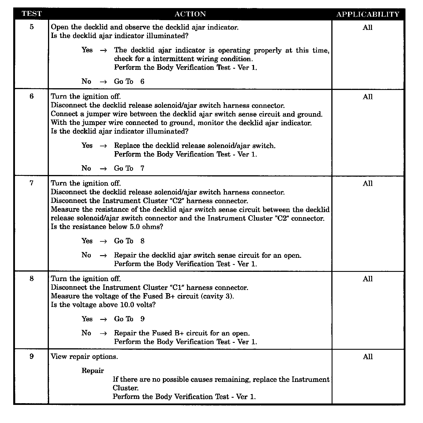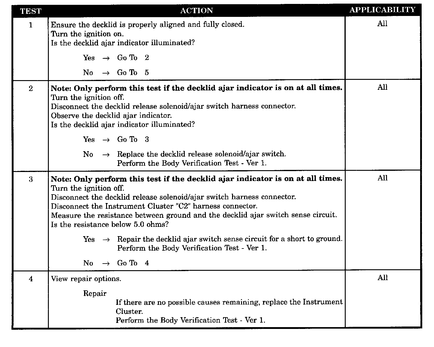 - Open decklid and observe the decklid ajar indicator