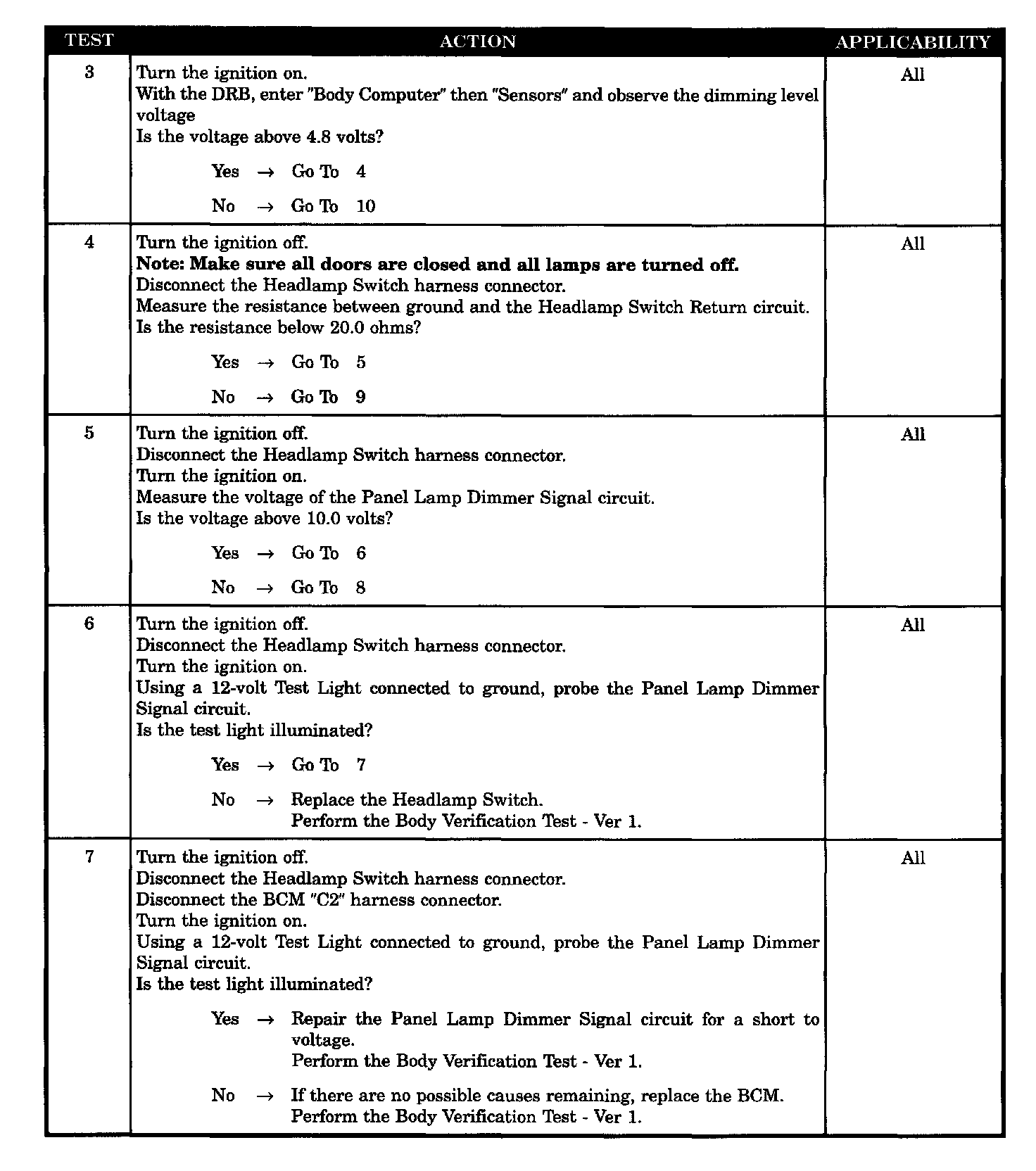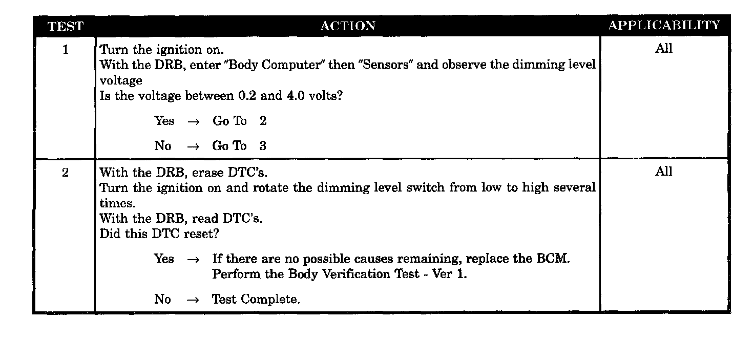 - With the DRB observe the dimming level voltage with headlamp switch disconnected