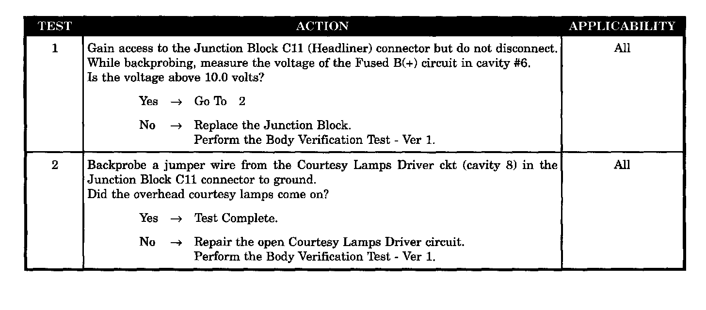 COURTESY LAMPS INOPERATIVE - OVERHEAD LAMPS