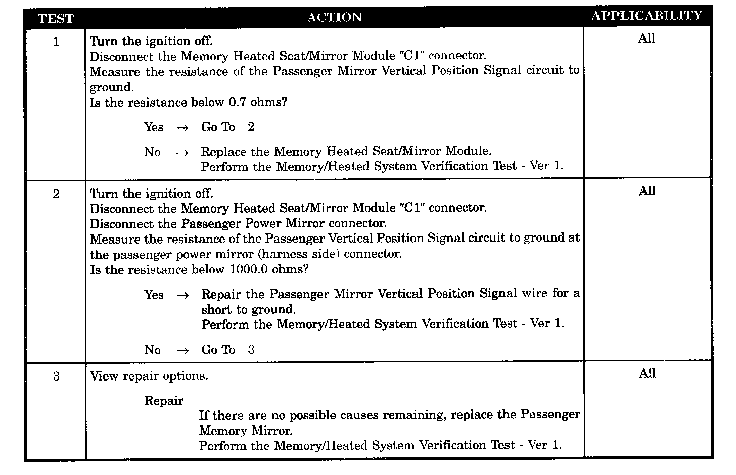- Passenger Mirror Vertical Position Signal Wire Short To Ground