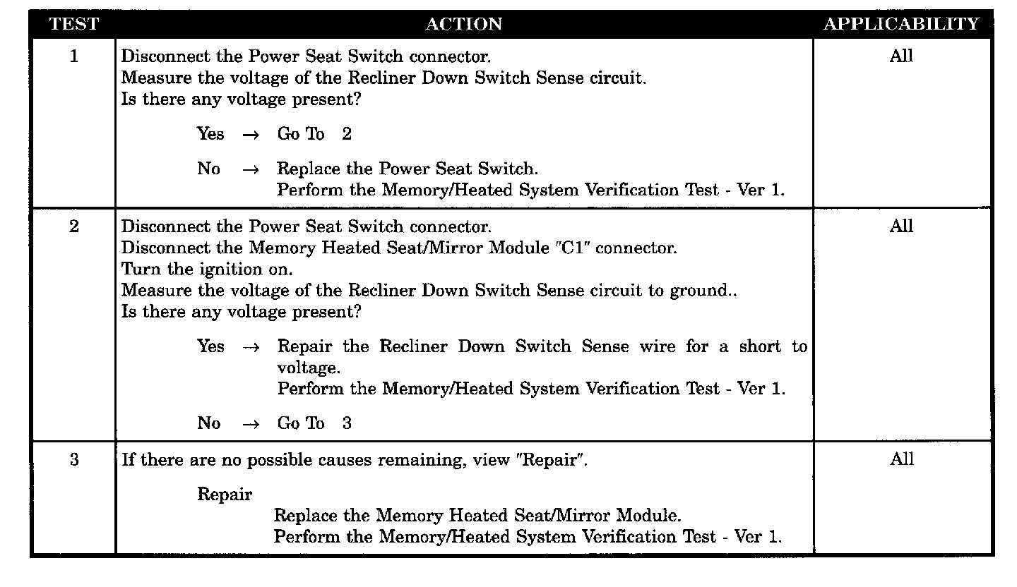 - Seat Recliner Down Switch Sense Wire Short To Voltage