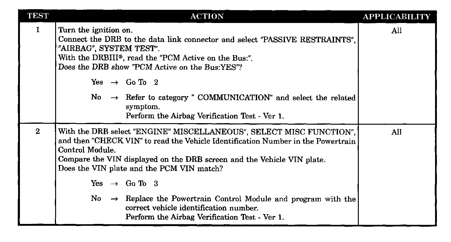 With ignition ON, the ORC monitors the PCI Bus for the VIN message containing the body style. The PCM transmits the 17-character VIN message every 13.76 seconds. Note: The VIN message should match the vehicle VIN plate.