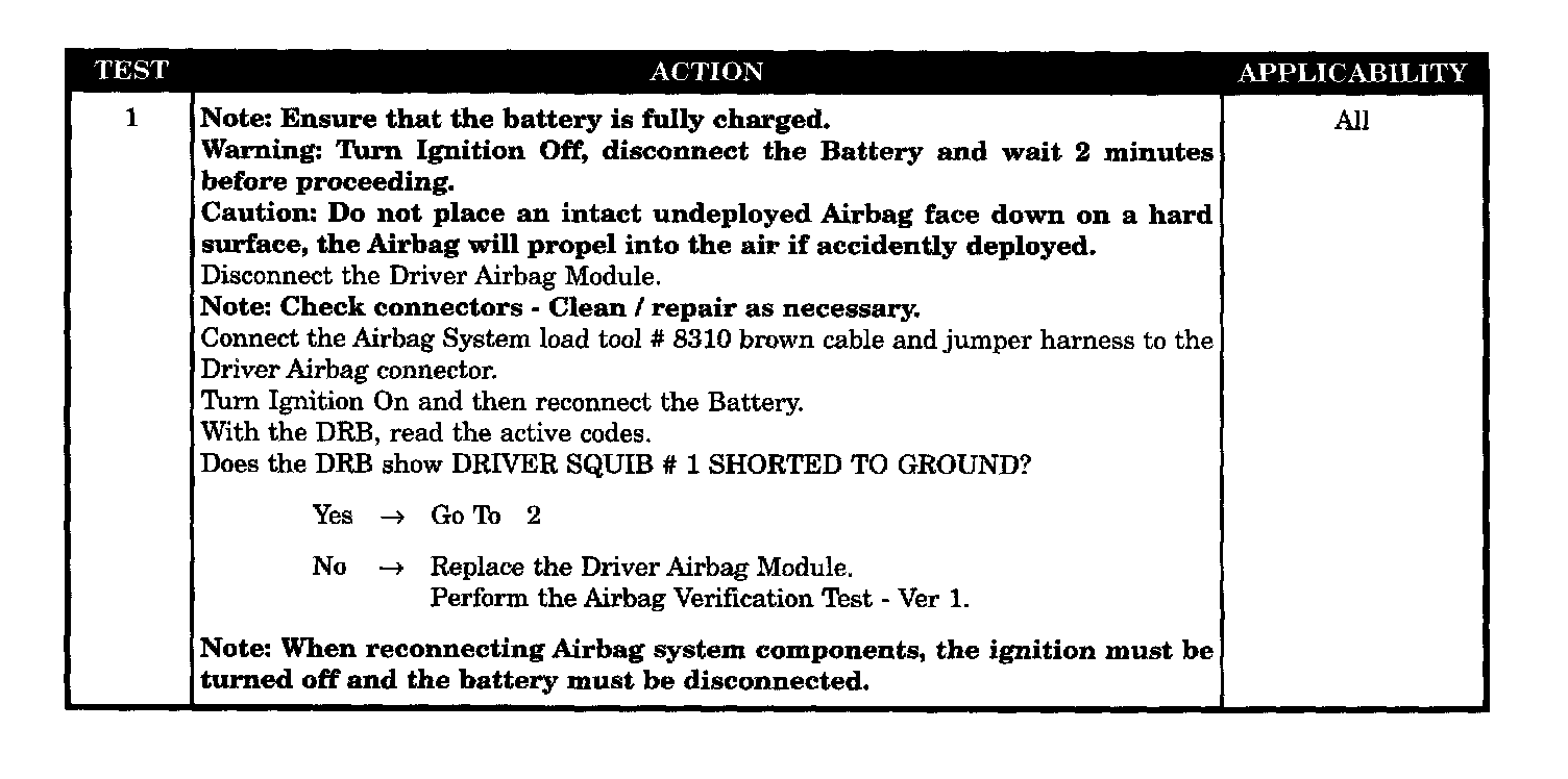 - Driver SQUIB # 1 line 1 shorted to ground