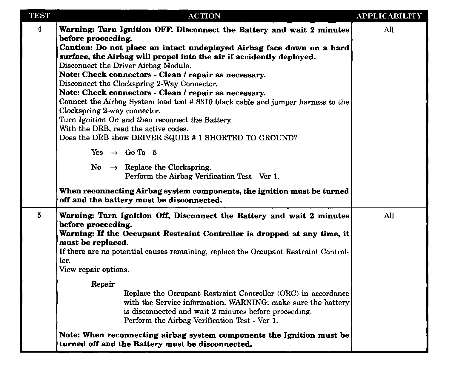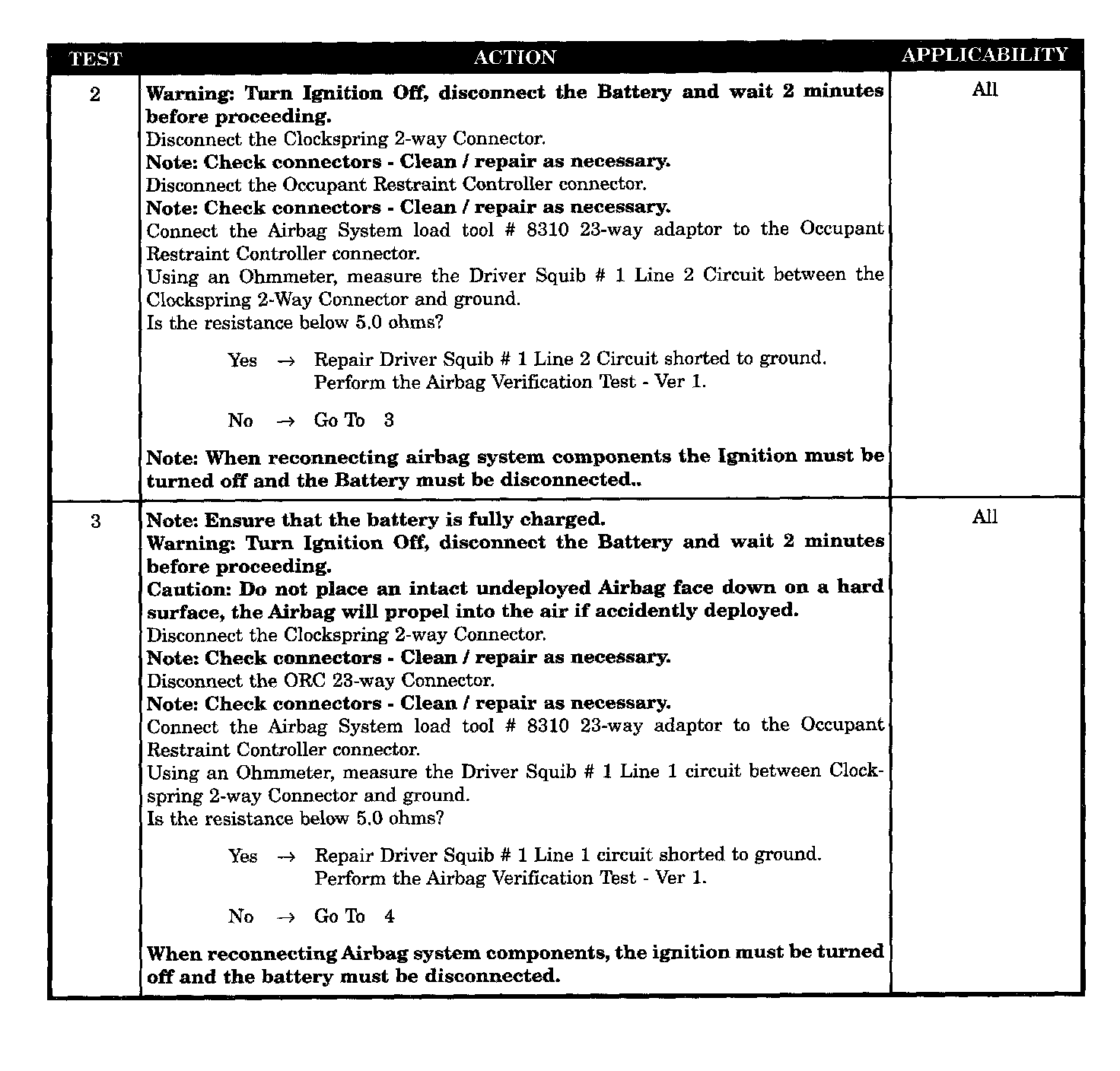 - Clockspring SQUIB # 1 circuits shorted to ground