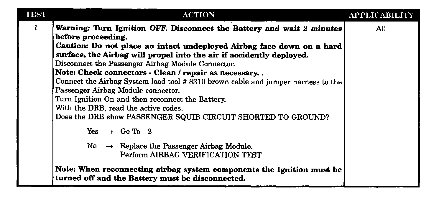 - Passenger airbag module circuits shorted to ground