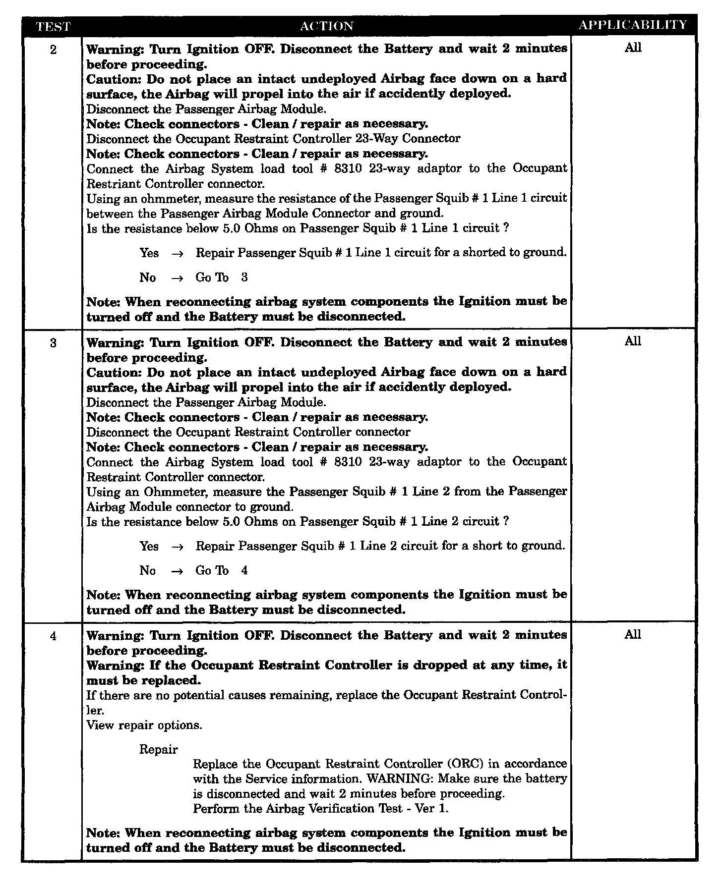 - ORC, passenger SQUIB # 1 circuits shorted to ground