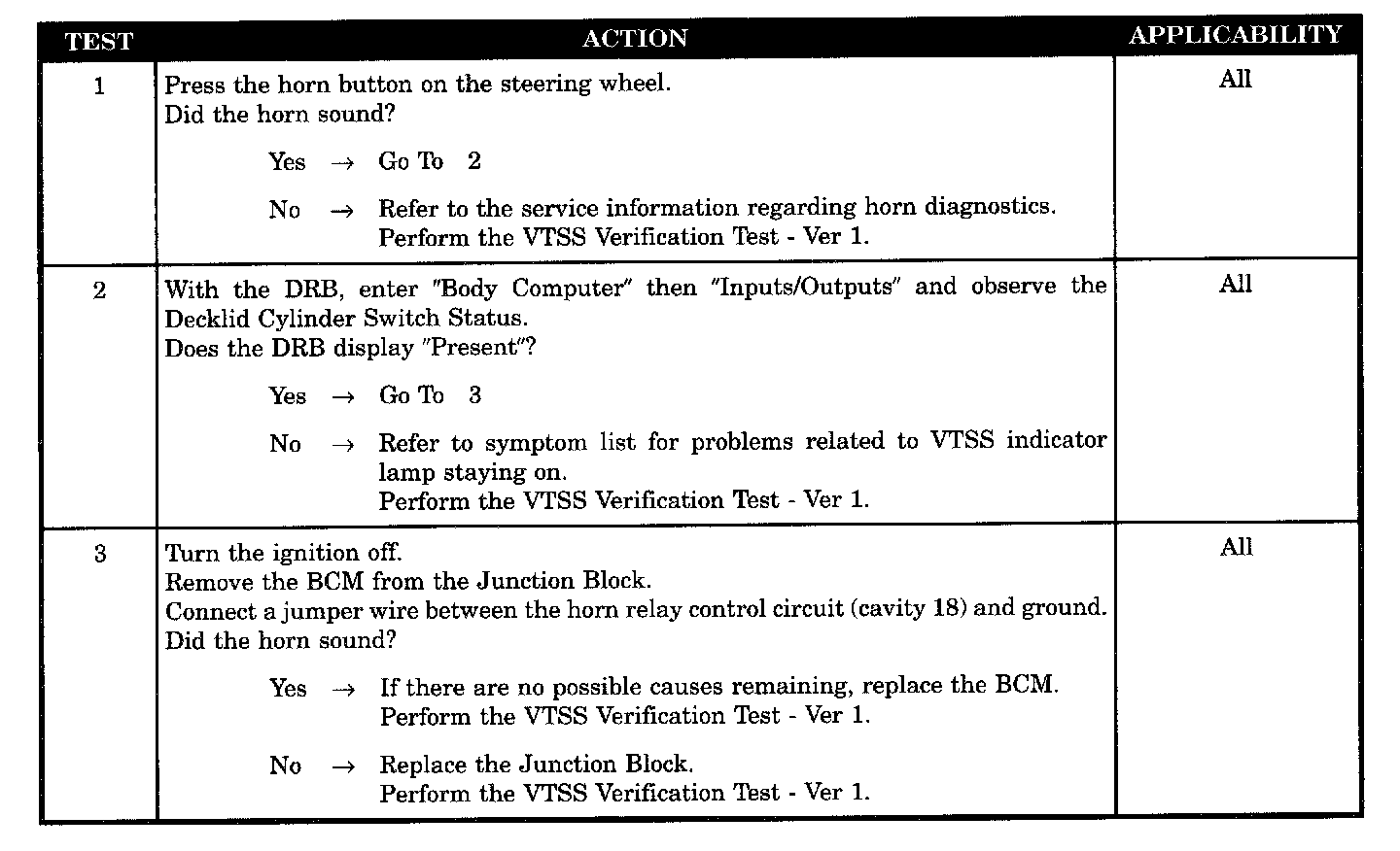 - With the DRB check the decklid cylinder (security) switch status