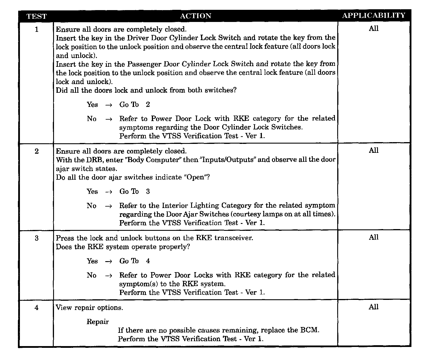 Check the Door Cylinder Lock Switches
