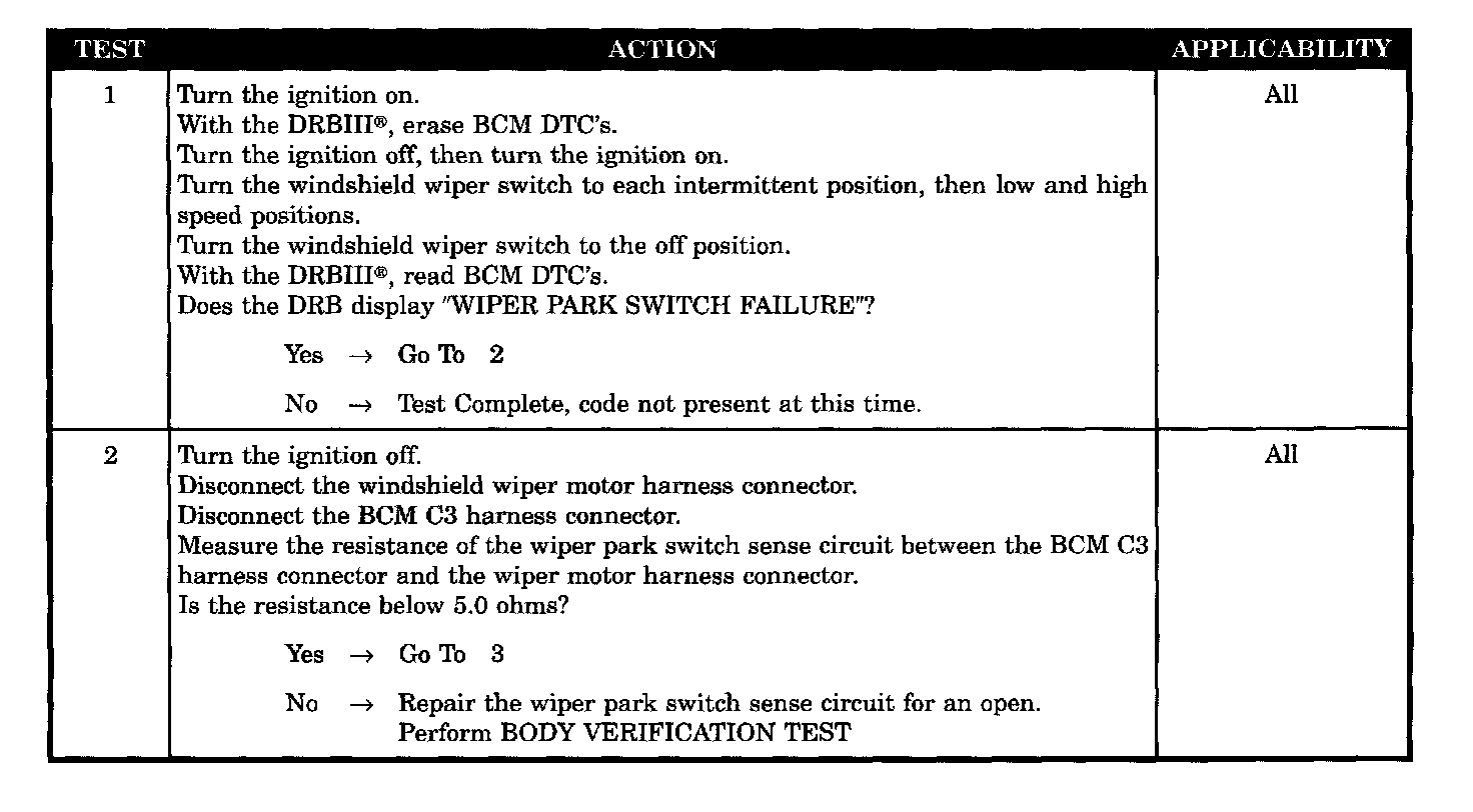- Verifying active DTC - wiper park switch failure