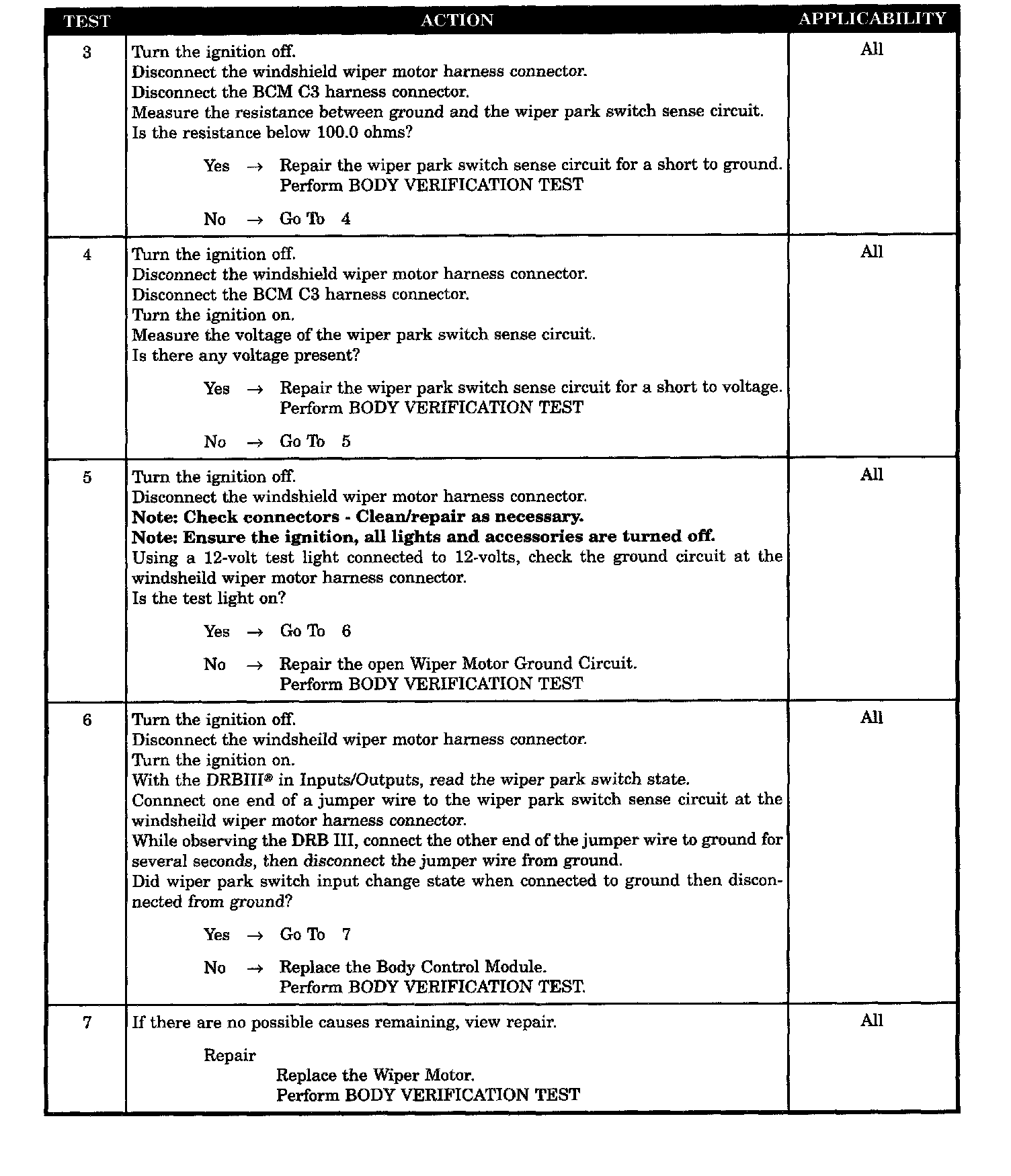 - Wiper park switch sense circuit short to ground