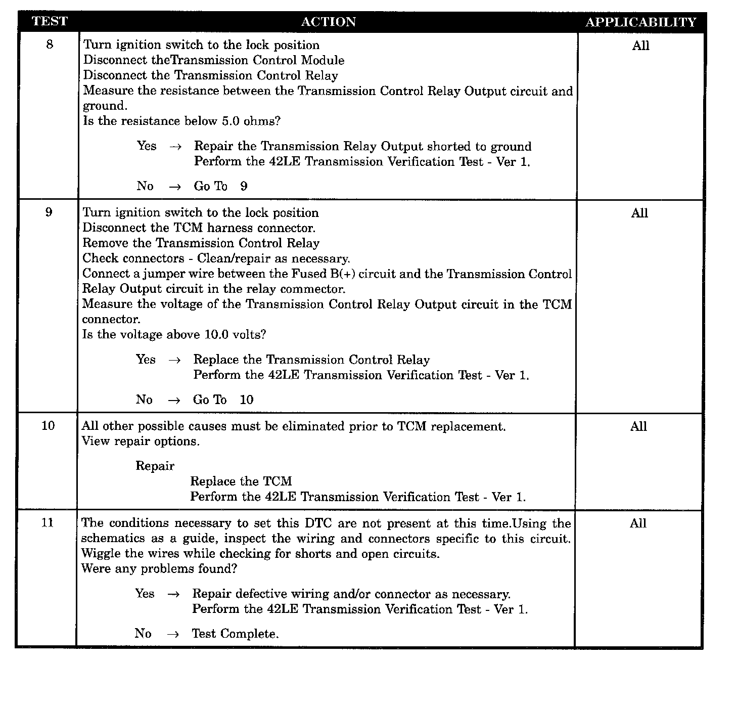 TRANSMISSION CONTROL RELAY OUTPUT CIRCUIT OPEN