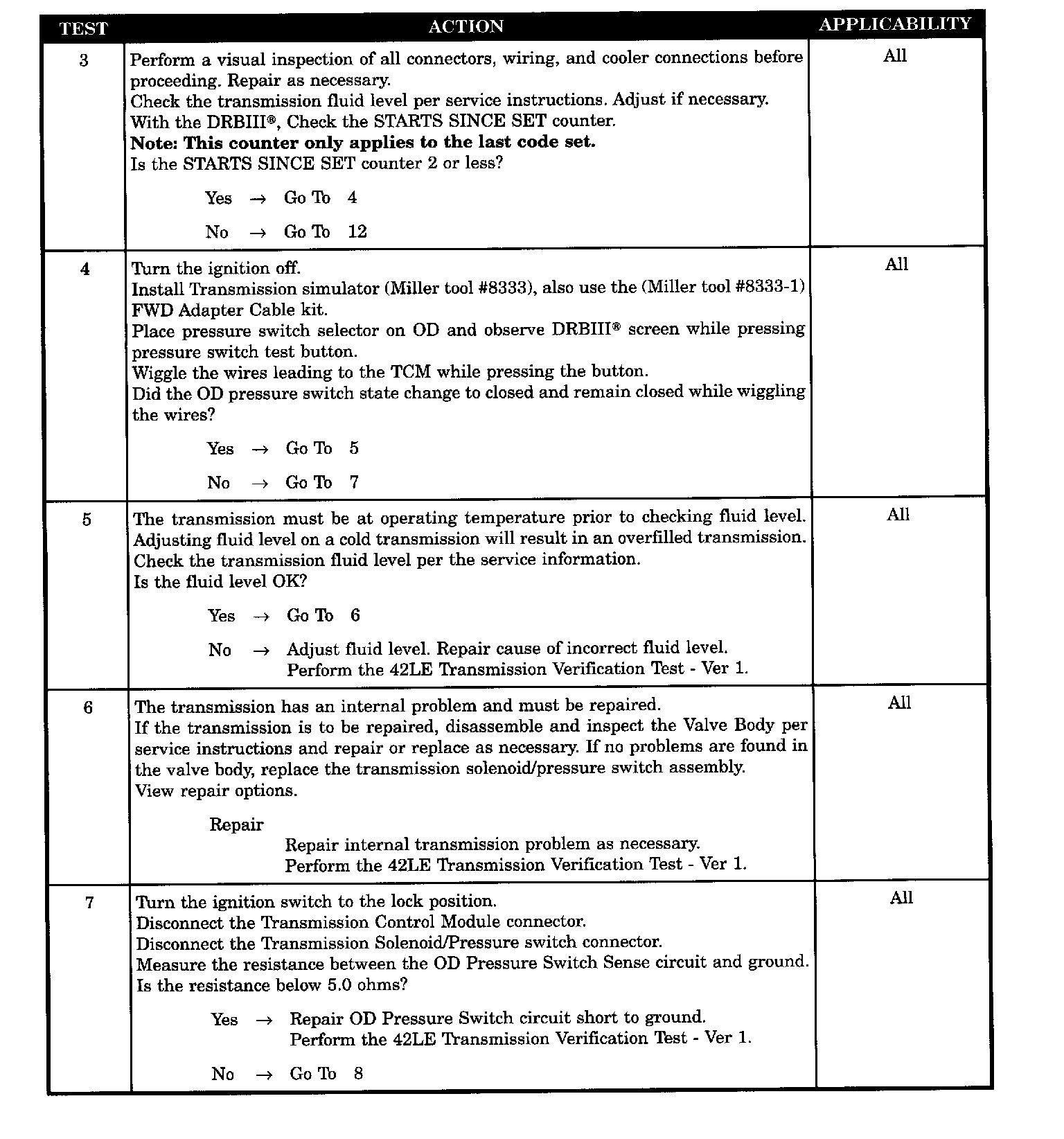 INTERNAL TRANSMISSION PROBLEM - OD PRESSURE TEST
