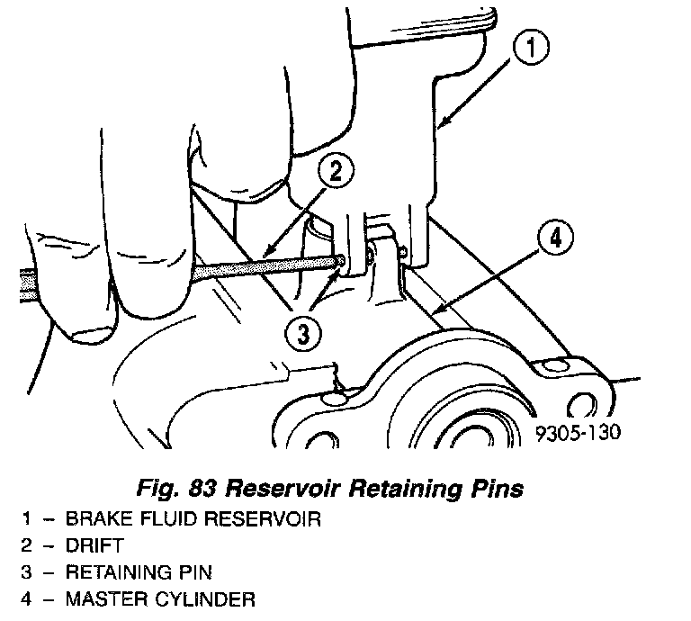 5. Remove the 2 fluid reservoir to master cylinder retaining pins.