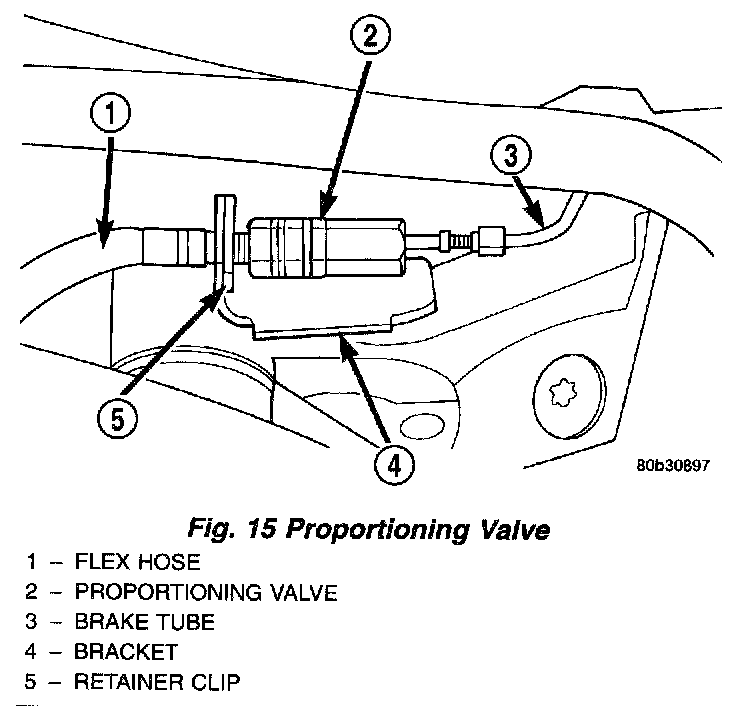 Both vehicles, with Antilock Brakes, and without Antilock Brakes, have two proportioning valves. One valve is connected to each rear flex hose. One proportioning valve controls the right rear brake, and the other proportioning valve controls the left rear brake.