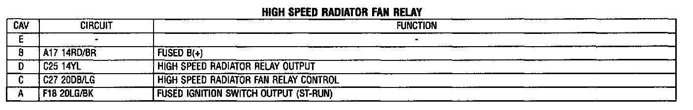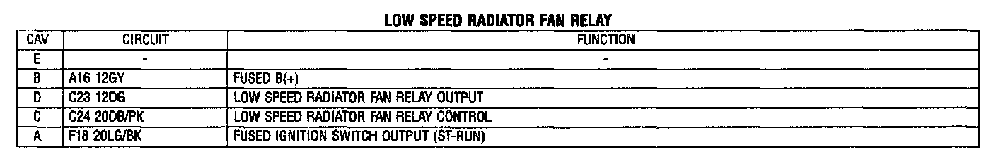 Low Speed Radiator Fan Relay:
