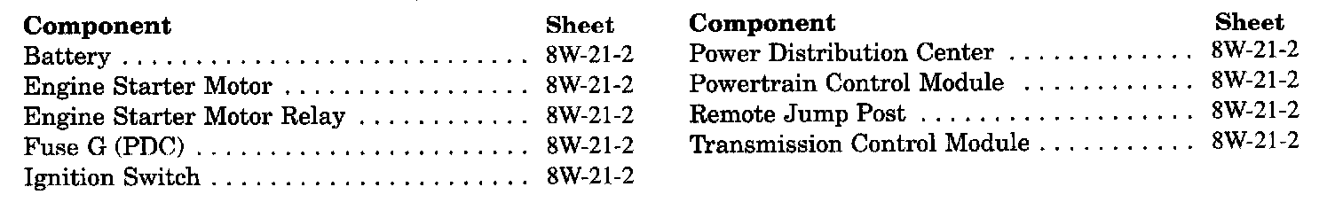 Starting System Component Index: