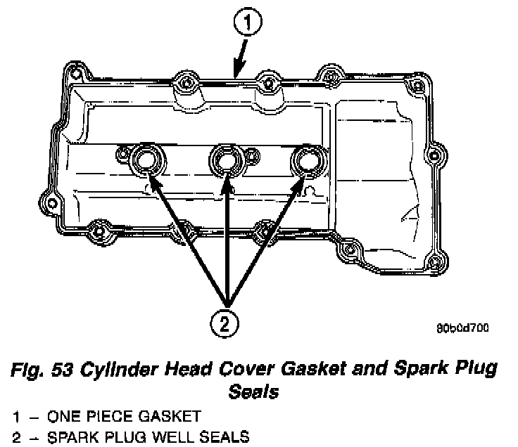 1. Clean cylinder head cover and both sealing surfaces. Inspect and replace gaskets as necessary (Fig. 53).