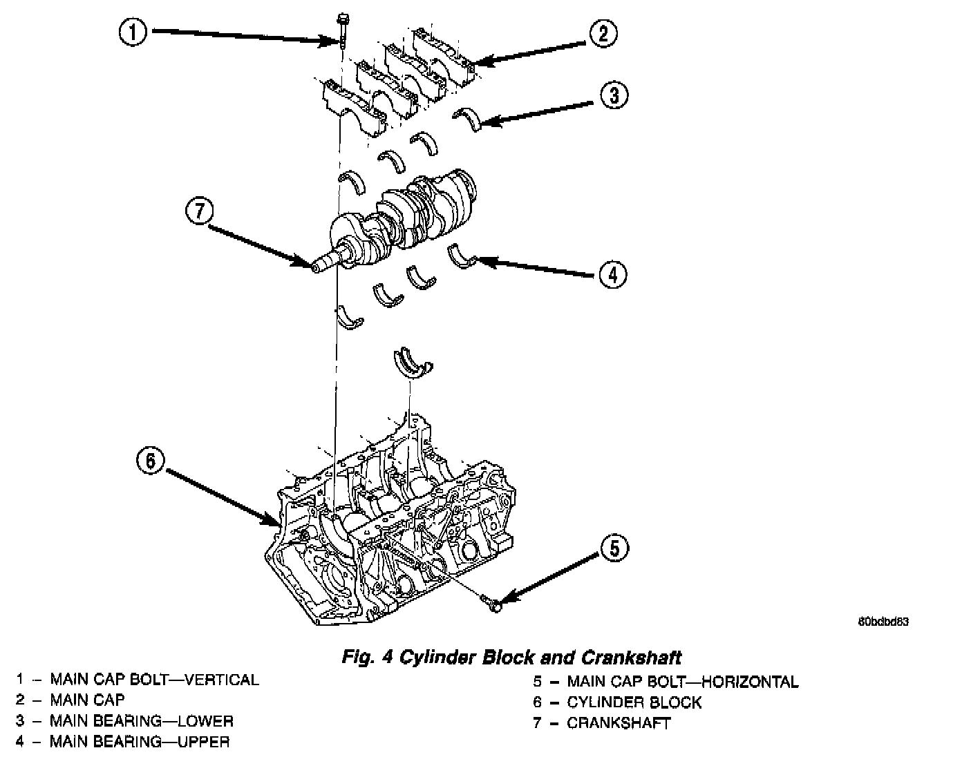 The cylinder block is made of heat treated aluminum with cast-in-place iron liners (Fig. 4). The block is a closed deck design with the right bank forward. To provide high rigidity and improved NVH, the block has cast-in contours and ribs, along with powdered metal 6 bolt main caps (4 vertical, 2 horizontal), with a die cast aluminum structural beam windage tray mounted to the main caps.