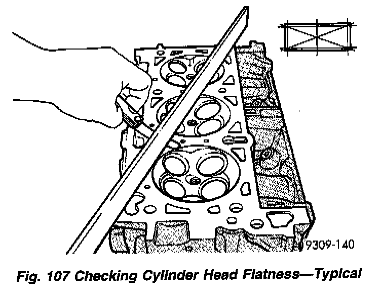 3. Check cylinder head for flatness (Fig. 107).