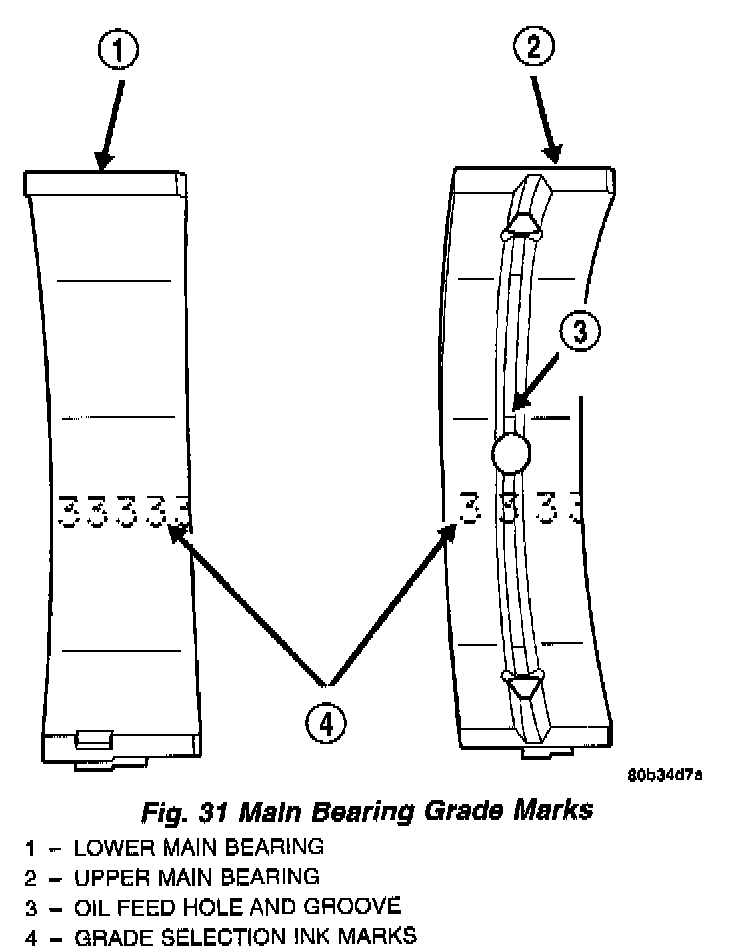 1. Mount a dial indicator to a stationary point at front of engine. Locate the probe perpendicular against nose of crankshaft (Fig. 32).