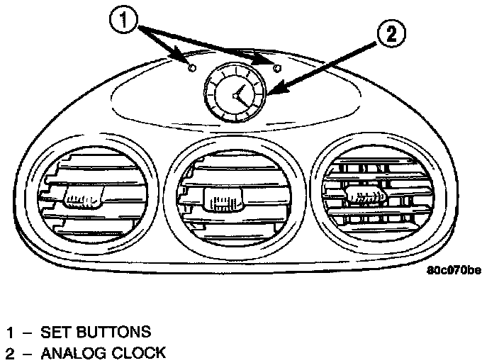 The clock is of analog type, mounted in the instrument panel center air distribution bezel.