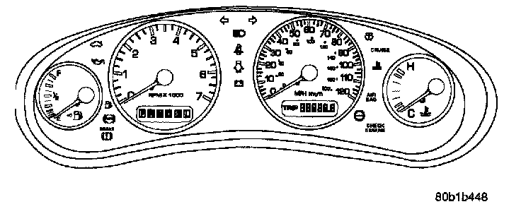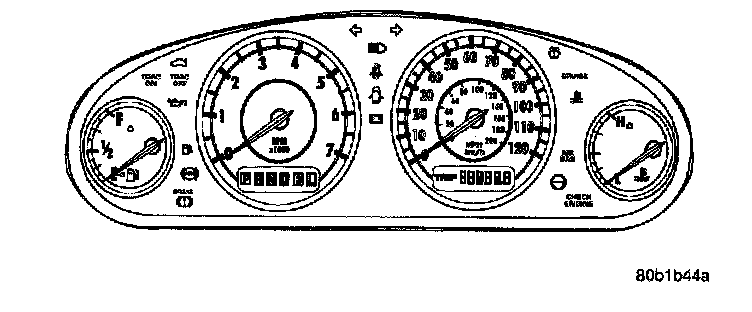 A self test can be initiated by holding down the odometer reset button and switching the ignition from "lock" to "OFF" (unlock). This test will activate the gauges, turn ON the indicator lights along with the odometer and PRNDL segments.