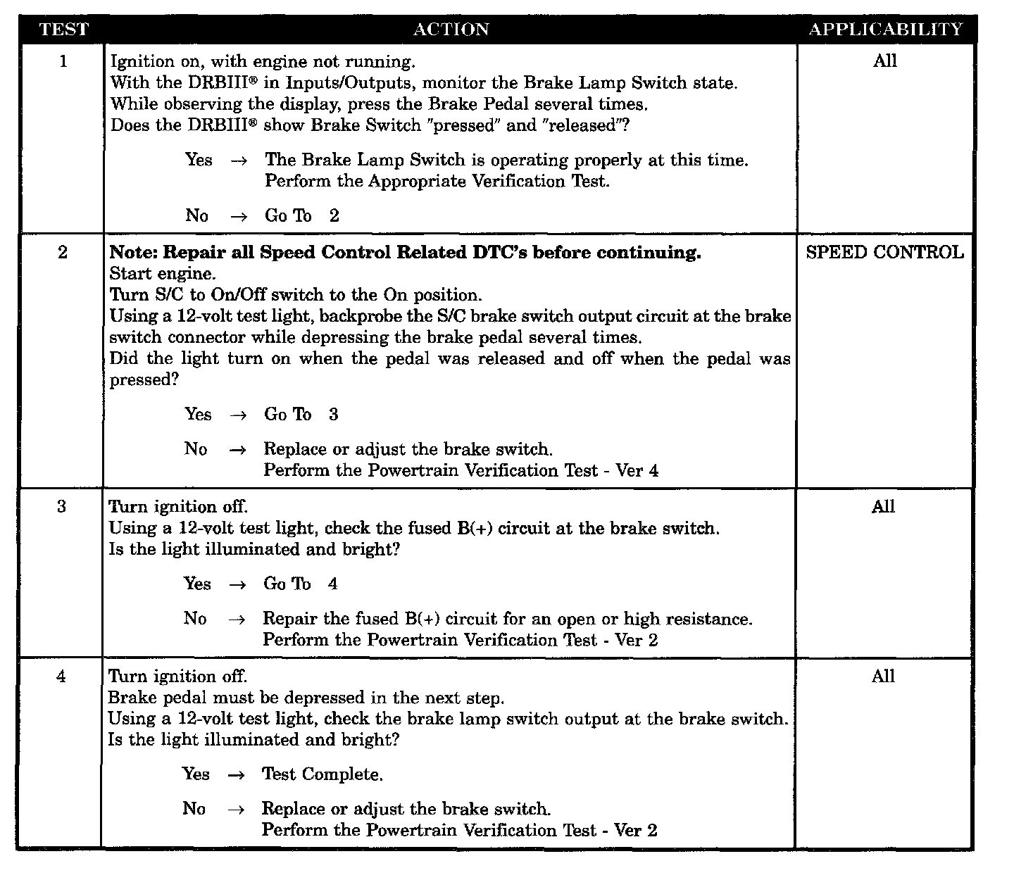 - DRB does not show brake switch pressed or released