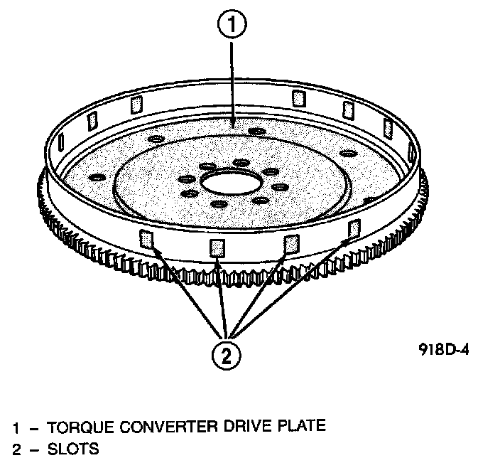 The crankshaft position sensor detects slots cut into the transmission driveplate extension. There are 3 sets of slots. Two sets contain 4 slots and one set contains 5 slots, for a total of 13 slots. Basic timing is set by the position of the last slot in each group. Once the Powertrain Control Module (PCM) senses the last slot, it determines which piston will be next at TDC from the camshaft position sensor input. It may take the PCM one engine revolution to determine crankshaft position.