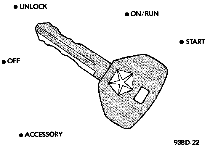 The ignition key rotates the cylinder to 5 different detents: