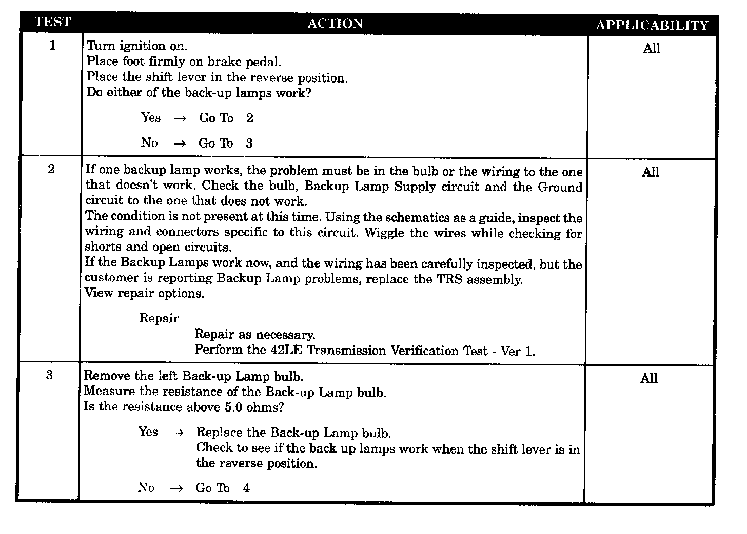 *BACKUP LAMPS INOPERATIVE