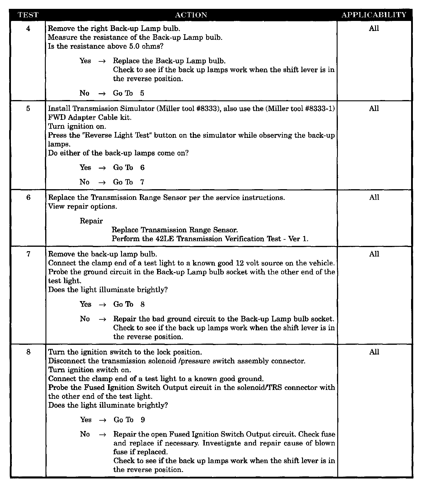 BACK-UP LAMP SUPPLY CIRCUIT SHORT TO GROUND