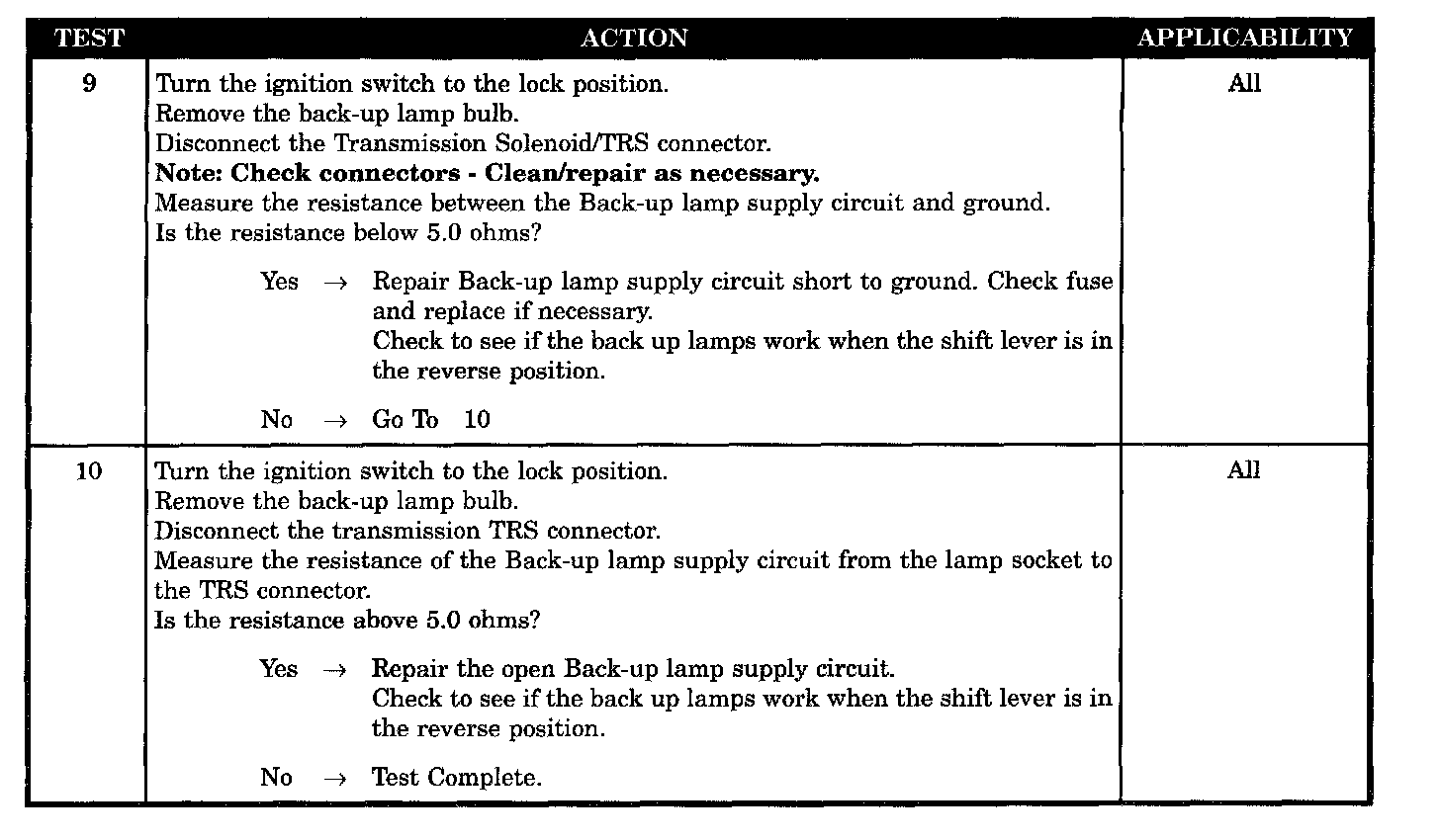 BACK-UP LAMP GROUND CIRCUIT OPEN
