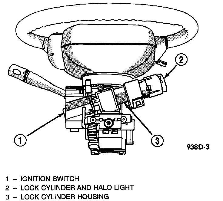 1. A tab on the ignition switch indexes to a notch in the lock cylinder housing. Also, a slot in the end of the ignition switch fits over the shaft in the end of the lock cylinder housing. Use the ignition key to rotate the lock cylinder to align the ignition switch with lock cylinder housing.