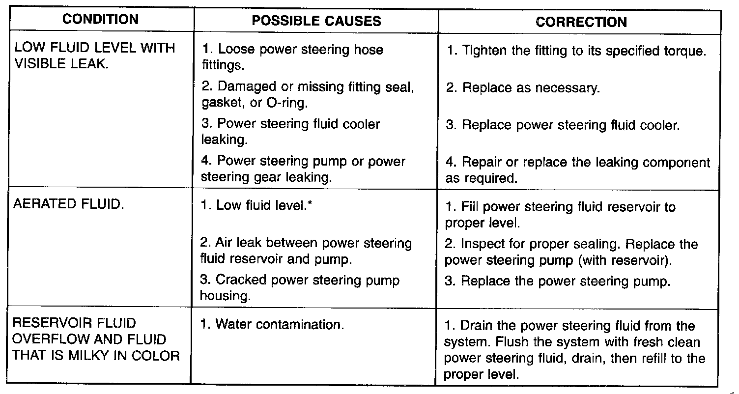 *NOTE: Extremely cold temperatures may cause power steering fluid aeration if the power steering fluid level is low.