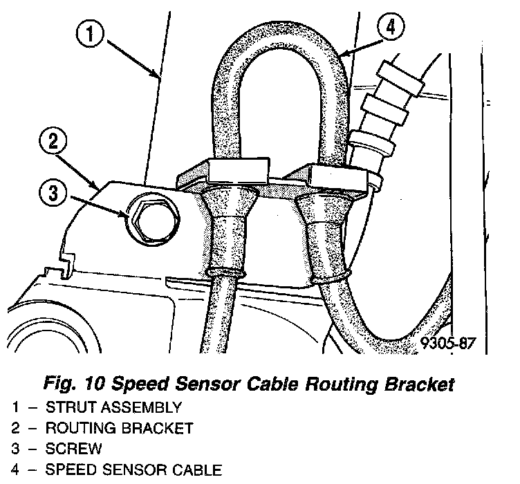 5. If the vehicle is equipped with antilock brakes. Install the front speed sensor cable routing bracket onto the front strut assembly.