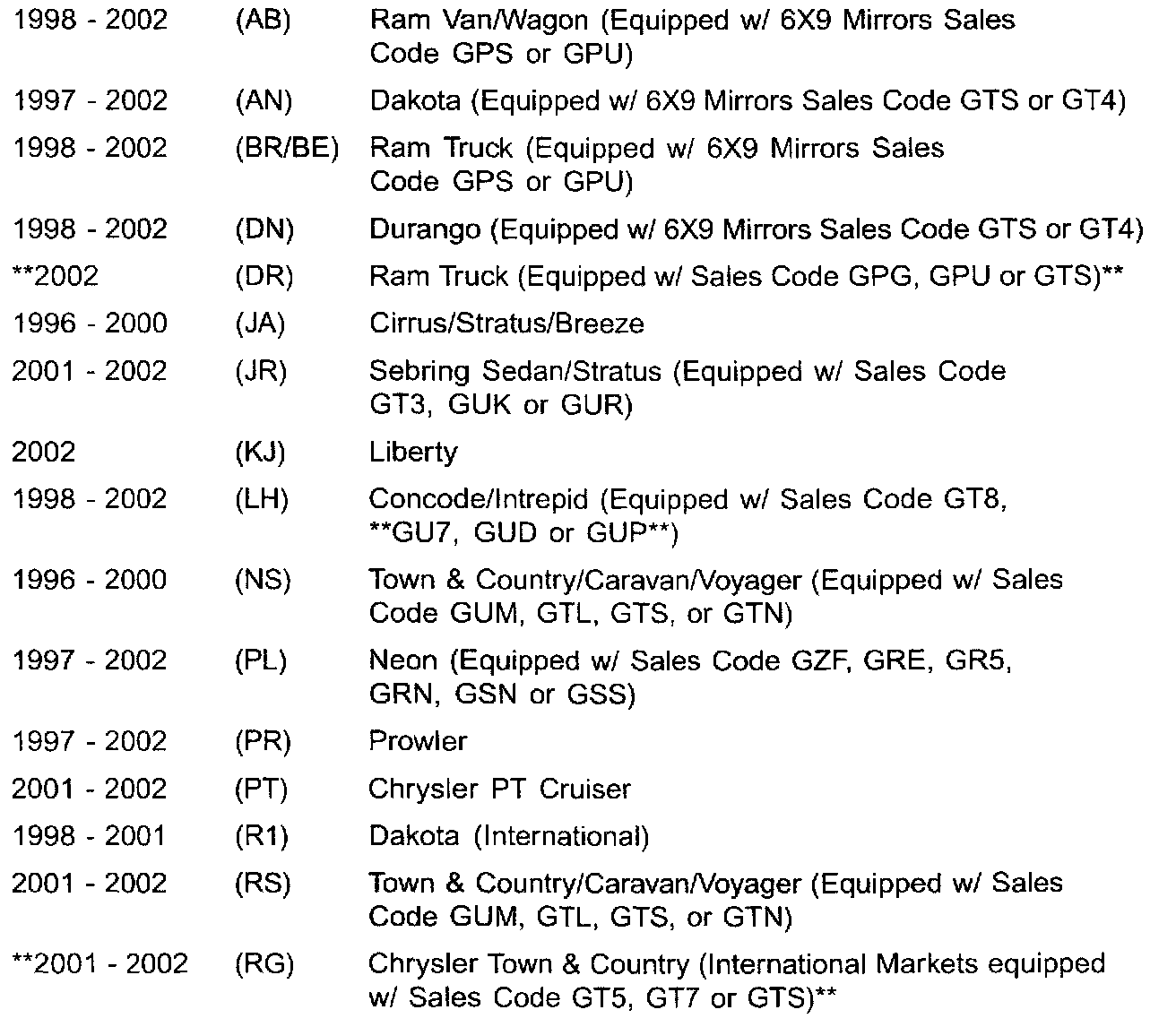 THIS BULLETIN SUPERSEDES TECHNICAL SERVICE BULLETIN 23-027-01, DATED SEPT. 21, 2001, WHICH SHOULD BE REMOVED FROM YOUR FILES. ALL REVISIONS ARE HIGHLIGHTED WITH **ASTERISKS** AND INCLUDE ADDITIONAL MODELS AND SALES CODES.