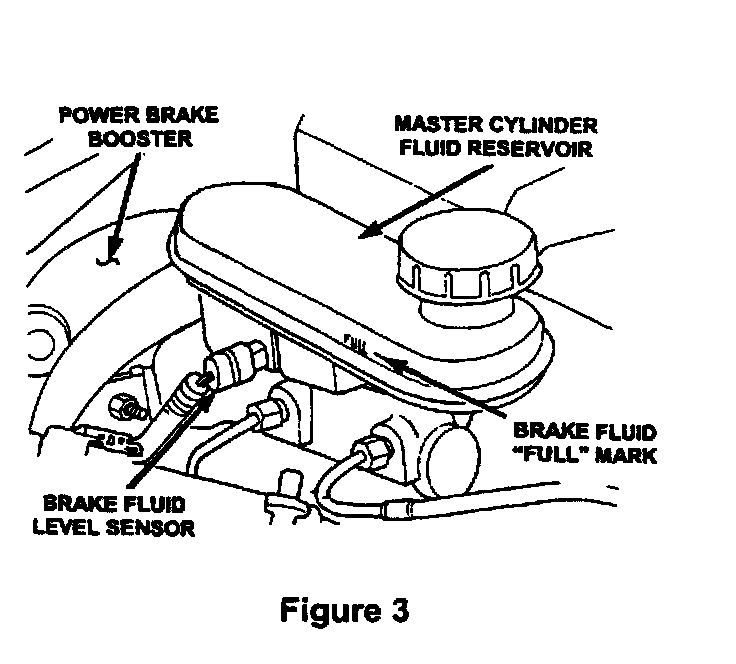 11. Depress the brake pedal several times and then recheck the brake fluid level. Add brake fluid until the fluid level reaches the "FULL" mark on the reservoir (Figure 3).